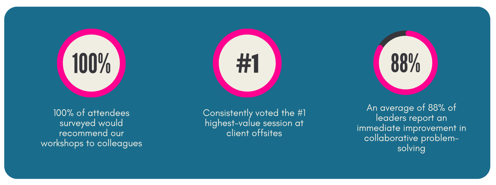 *These numbers reflect the average feedback we’ve received from teams and leaders over the last 8 years.We Bring the Workshop to You